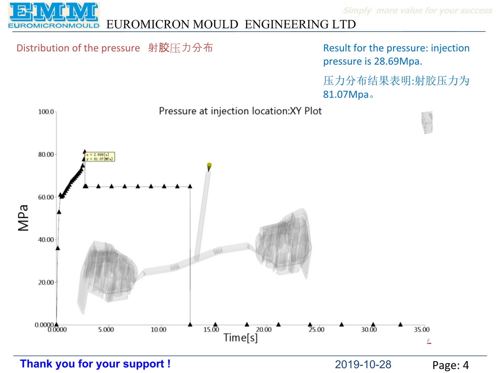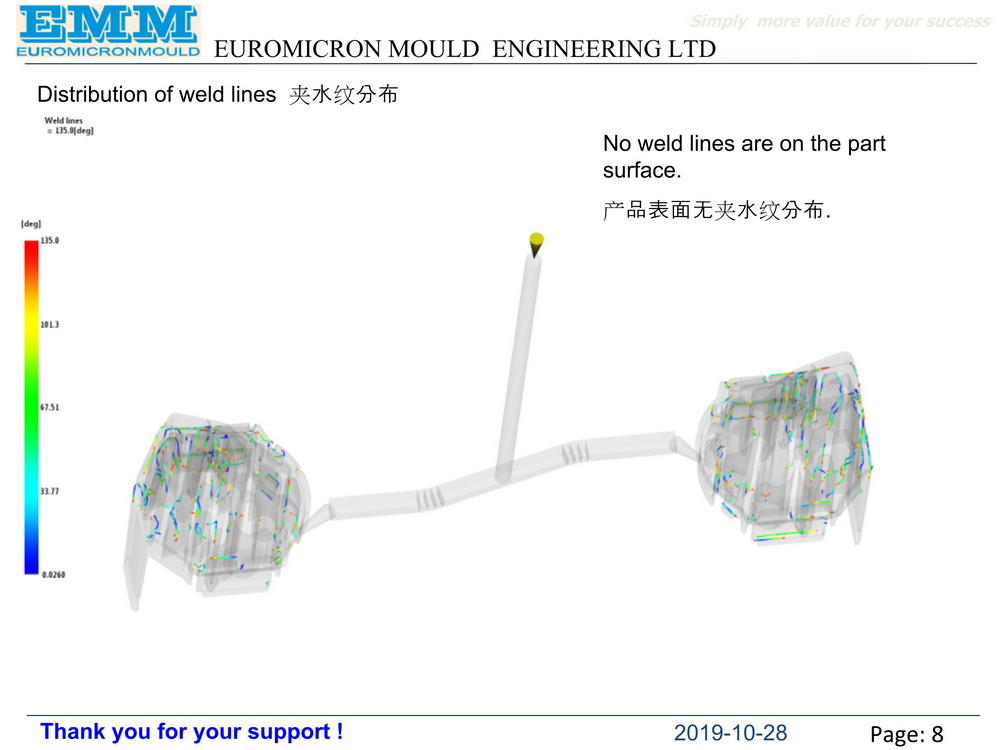 We do mold flow analysis according to customer requirements, so that the customer can see the whole process of simulation mold injection.