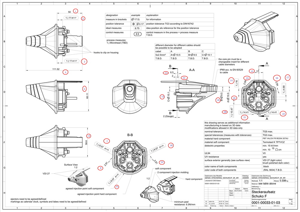 This is 2K plastic mold, used for electric car socket plastic components, PBT and TPE.