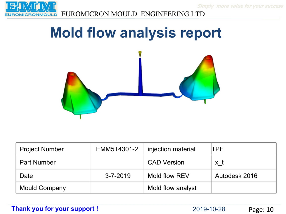 We do mold flow analysis according to customer requirements, so that the customer can see the whole process of simulation mold injection.